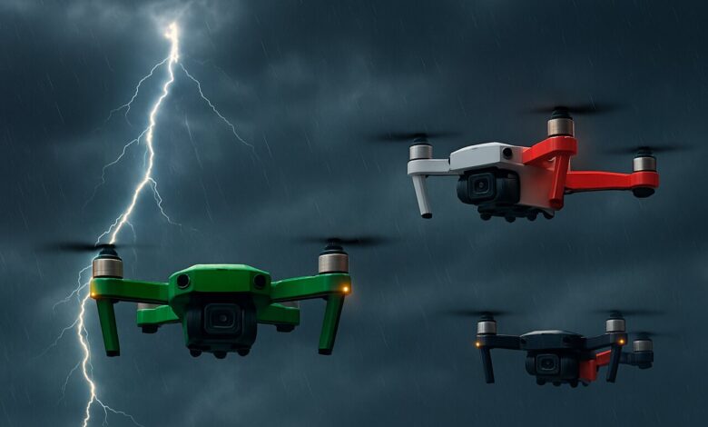 چالشهای محیطی: پرواز در محیطهای ابری پرچالش است. یخزدگی بر روی پروانهها یک نگرانی مهم برای پهپادهای چندروتور است، اگرچه راهکارهایی مانند نصب پروانههای گرمایشی (مانند Meteodrone) برای جلوگیری از تجمع یخ توسعه یافتهاند. همچنین، بادهای شدید، دماهای پایین (که بر عمر باتری تأثیر میگذارند) و رطوبت بالا (که به قطعات الکترونیکی آسیب میزند) از جمله عوامل محیطی هستند که عملیات پهپادها را محدود میکنند.