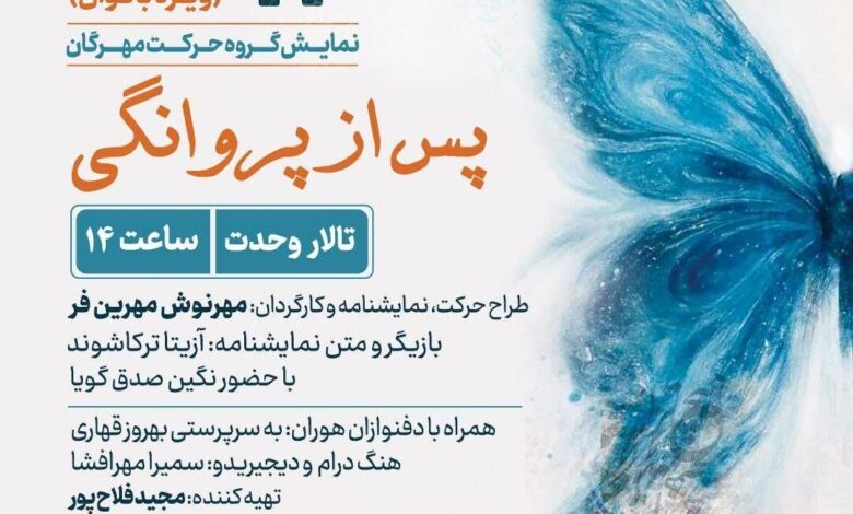 «پس از پروانگی» از ساعت ۱۴ روز جمعه ۱۲ دی ویژه بانوان در تالار وحدت روی صحنه میرود و علاقهمندان میتوانند بلیت آن را از سایت ایرانکنسرت تهیه کنند.